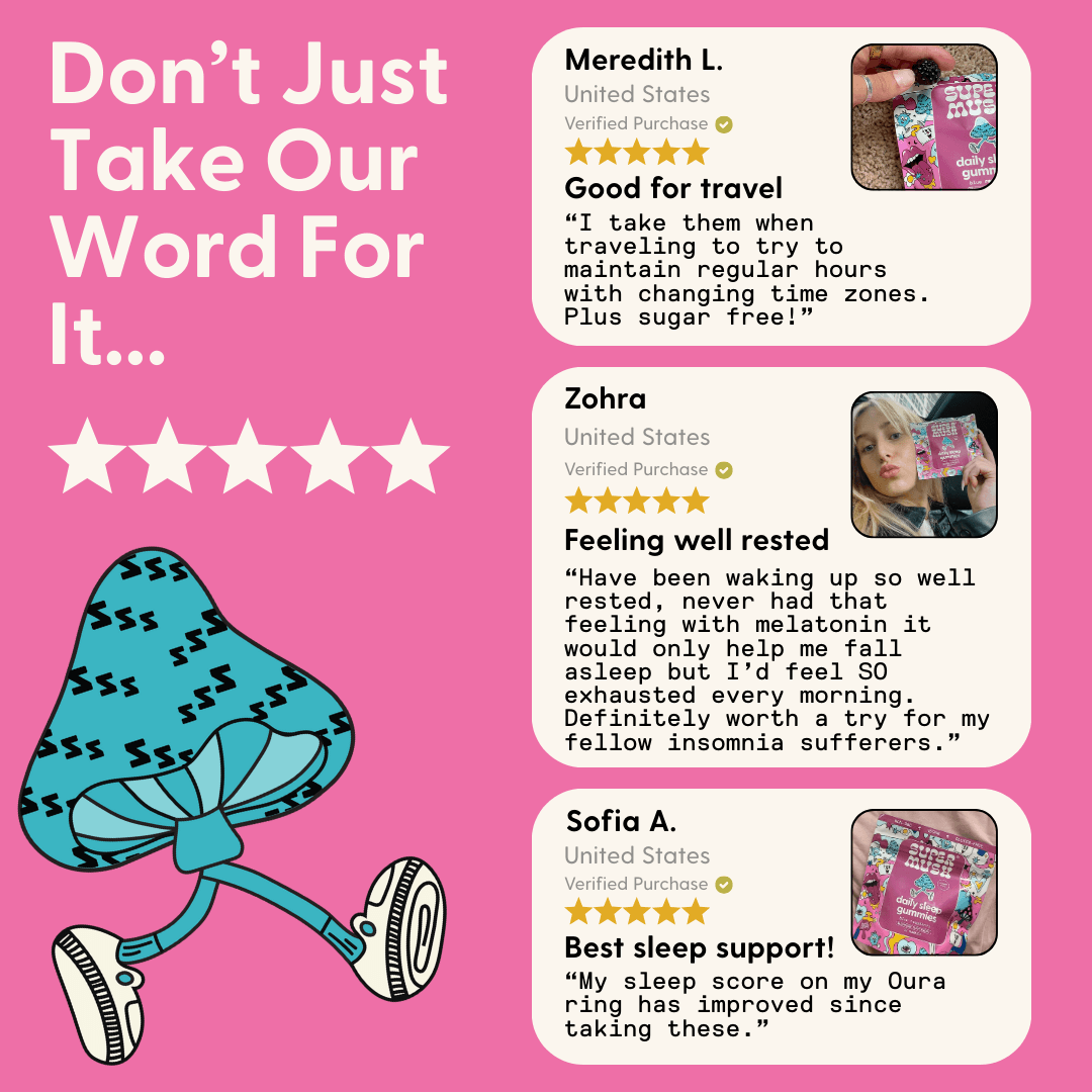 Your new sleep aid. Sugar free superfood sleep gummies for deep and restful nights. Powered by functional mushrooms and adaptogens for optimal rest. Melatonin-free. Science-backed. 3rd party lab tested. Made in the USA.