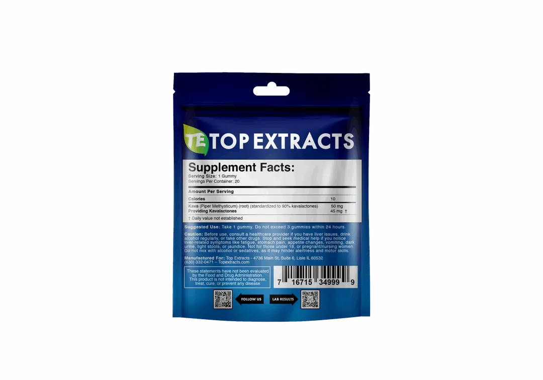 Ingredients: Kava Kava Extract, Purified Water, Glucose, Sucrose, Pectin, Citric Acid, Natural & Organic Flavor Safety and Quality you Can Trust We are committed to providing you with the highest quality products. All of our gummies are lab-tested for purity and potency, ensuring they are free from contaminants and accurately dosed. We adhere to strict manufacturing standards to deliver a product that is both safe and effective.
