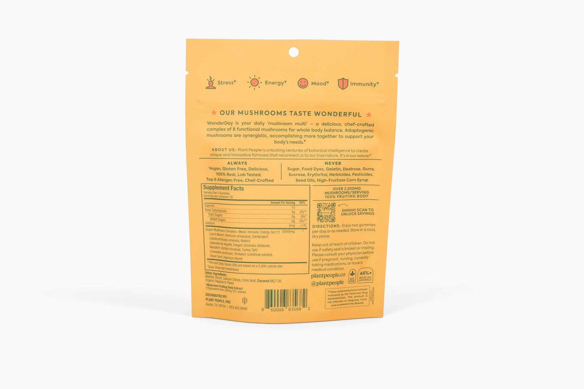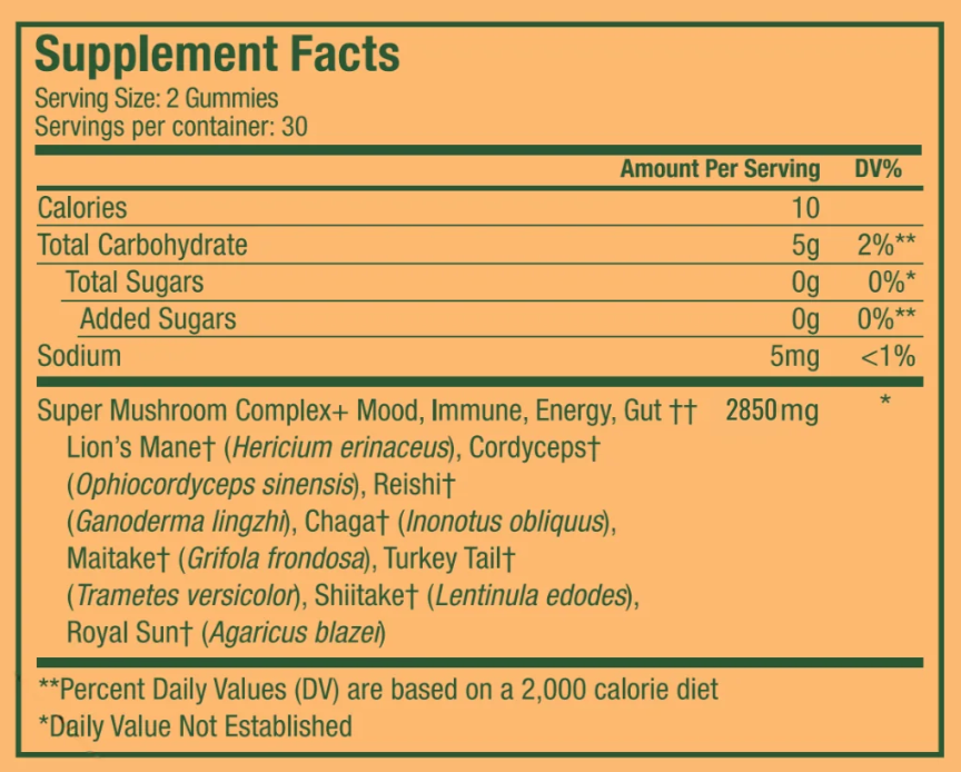 Our best-selling zero-sugar, mushroom gummies help to support mood, stress, energy and immunity. Each serving is a mushroom POWERHOUSE with 8+ functional mushrooms. 60 gummies per pouch. 30-day supply.
